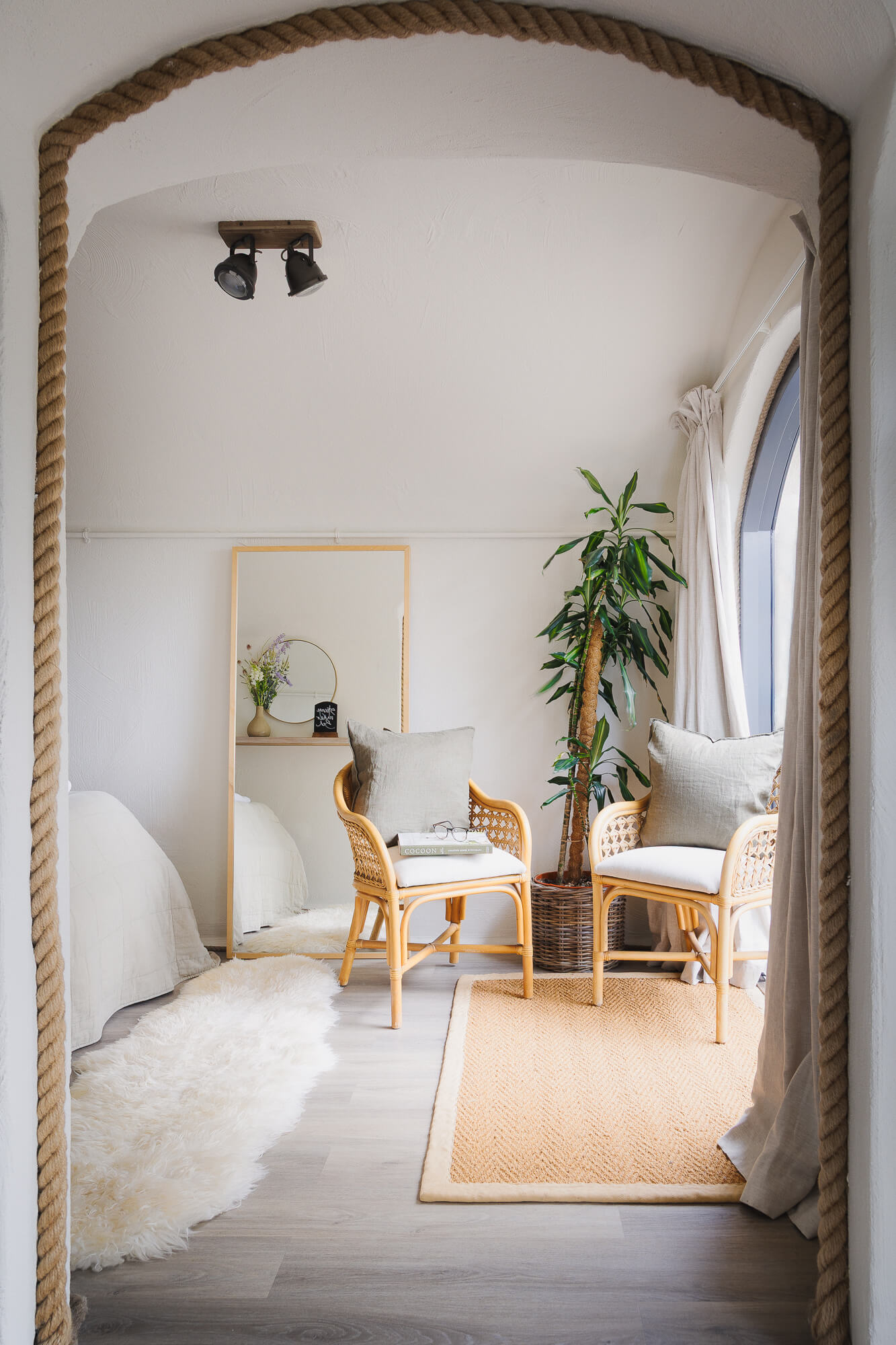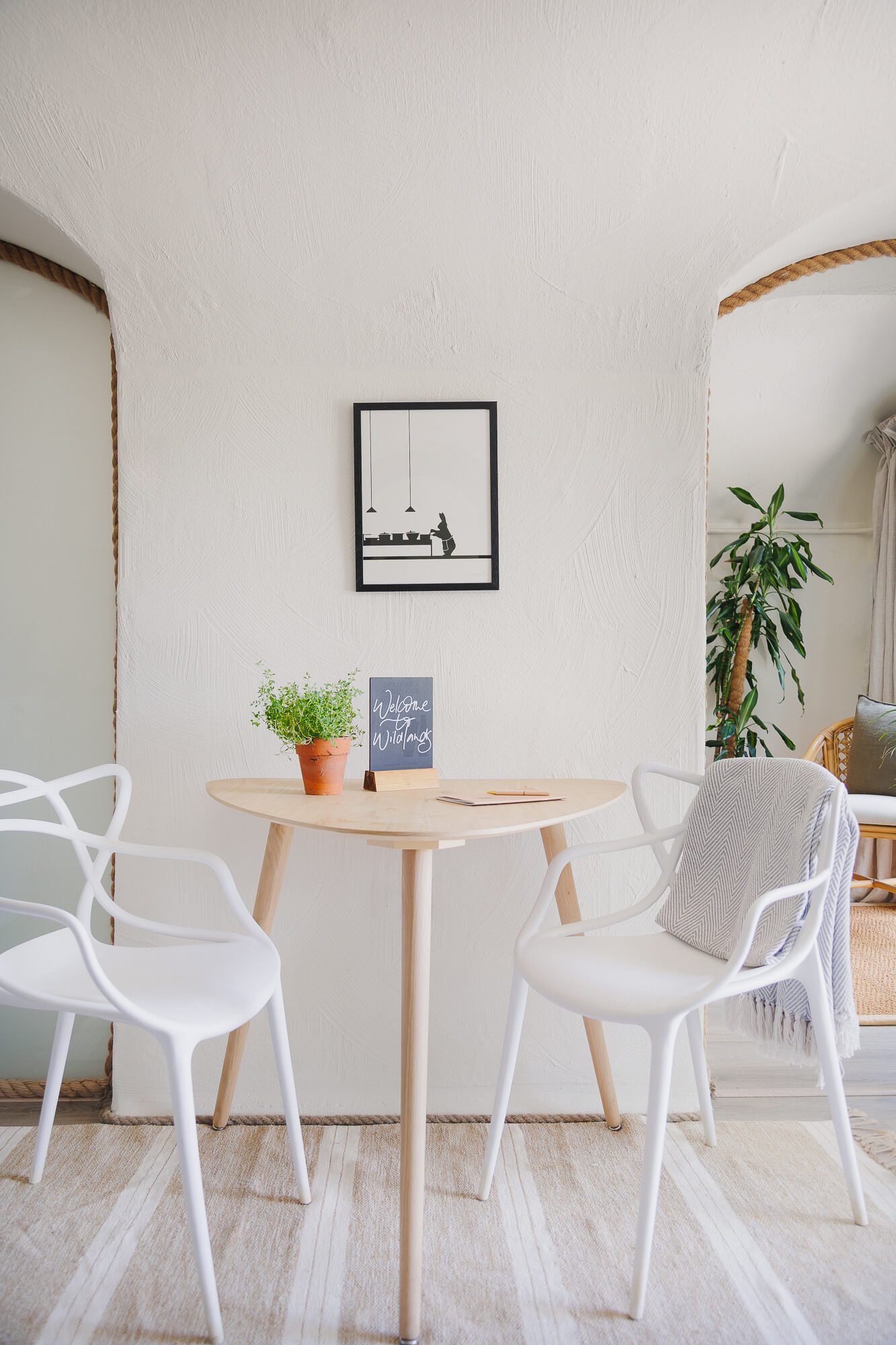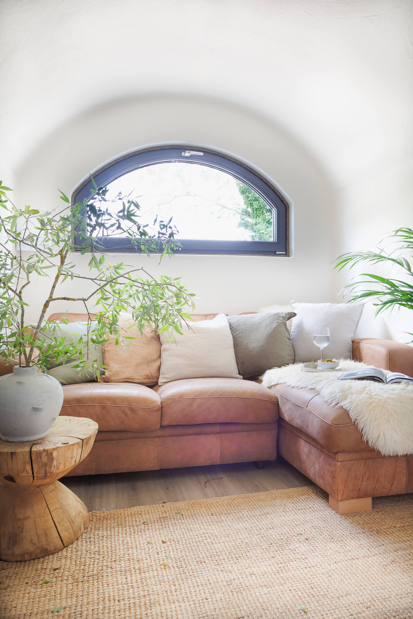 From the outside, it feels like part of the hillside. Step through the arched doors and you’ll find a fully equipped, thoughtfully designed interior: kitchen, living area and bathroom, all shaped by the vaulted concrete structure that keeps temperatures steady year-round.