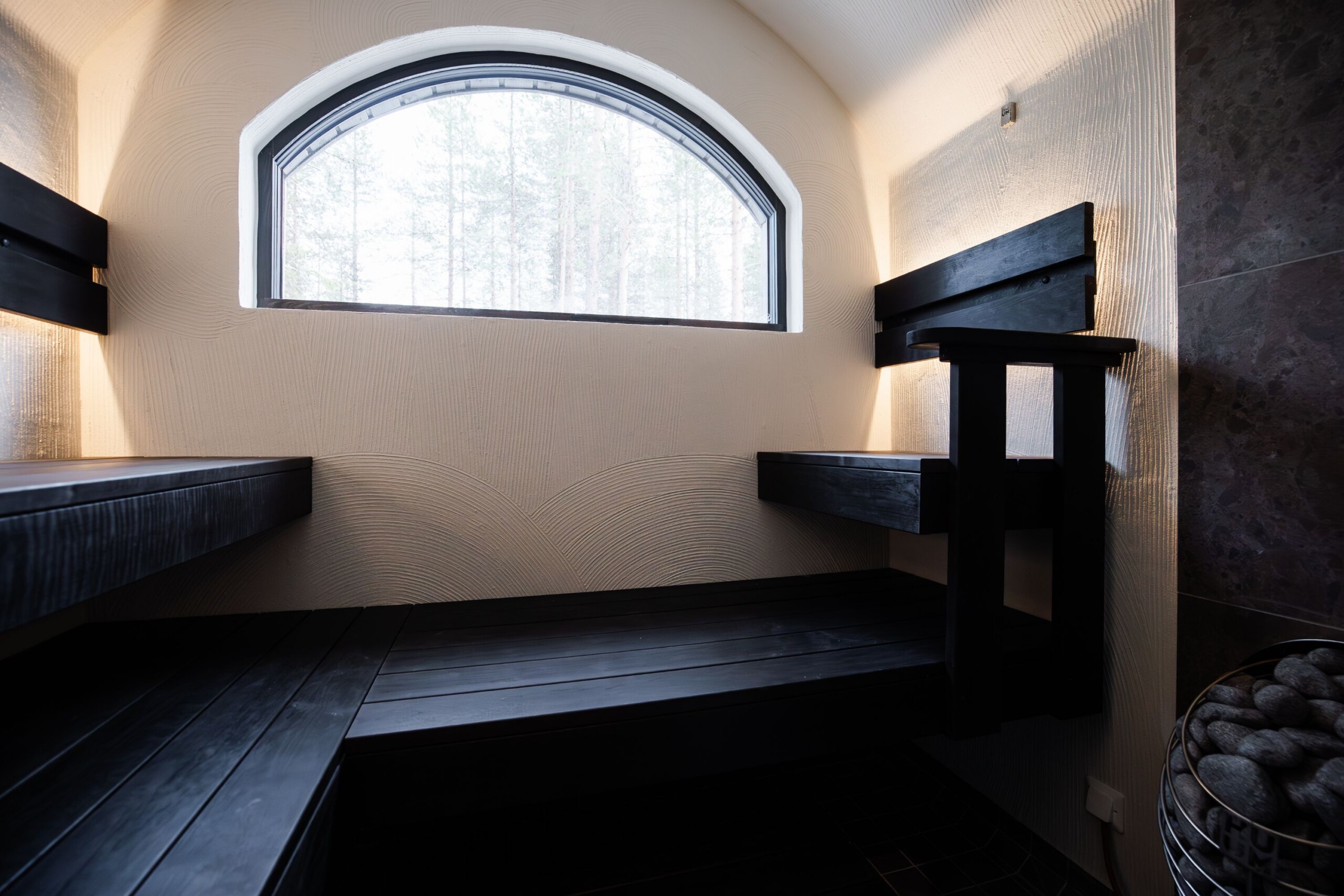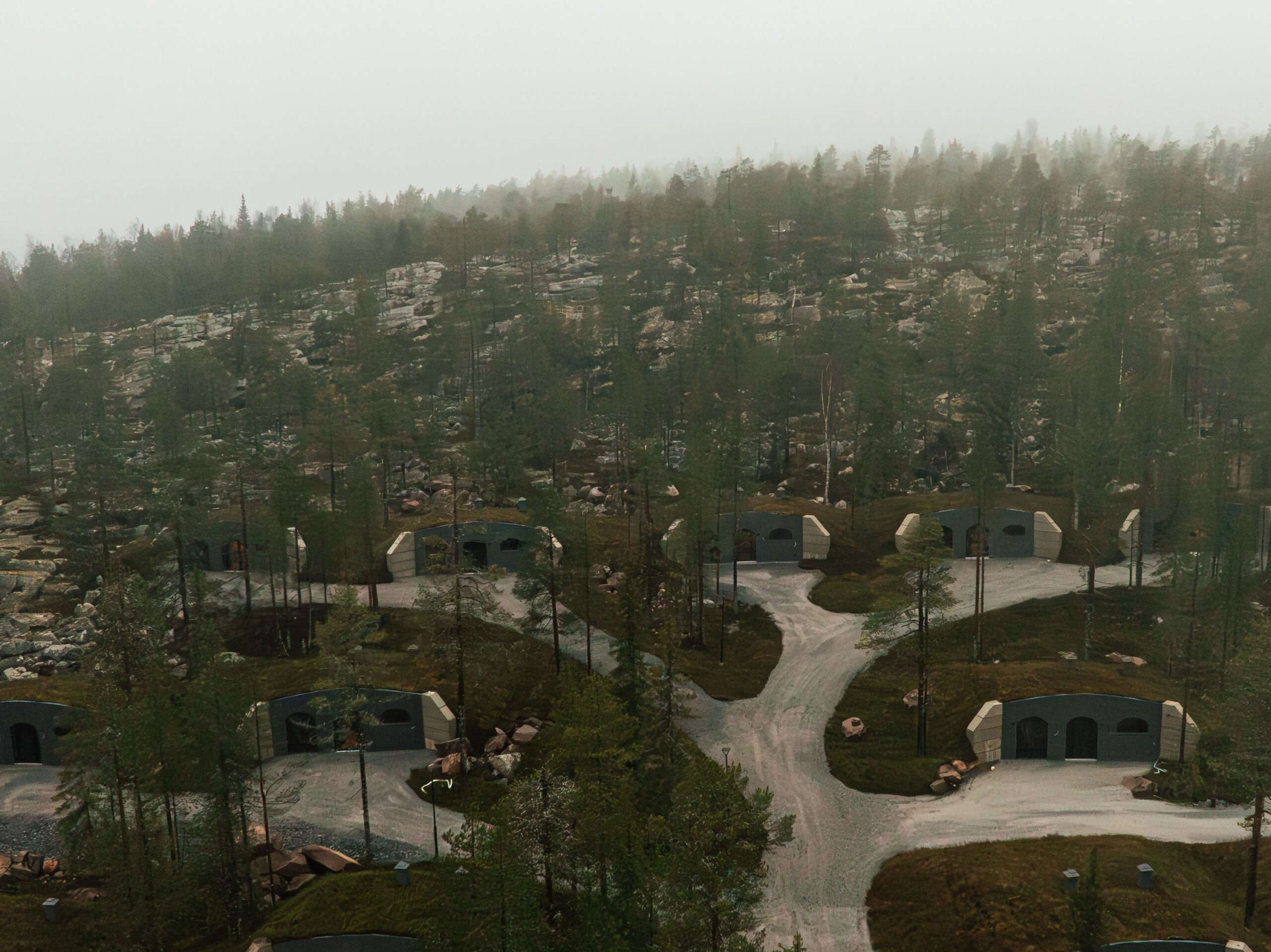 We built 80 modular underground suites that blend naturally into the Aavasaksa landscape, as if they have always belonged there. Covered by earth and shaped by arched concrete, these suites maintain a naturally stable indoor climate throughout the year while keeping energy use low. Inside, guests are welcomed by thoughtful Nordic design — a kitchenette, cozy living area, bathroom and private sauna, with peaceful views toward the surrounding forest and Lapland’s fells. Soft lighting, natural materials and warm tones create an atmosphere that invites you to slow down and breathe. These suites are designed for quiet privacy and sustainability, offering a modern yet grounding way to experience Lapland. Built with respect for nature and a minimal environmental footprint, each suite becomes a calm retreat into the heart of the Arctic landscape. Read more about one of the largest modular house orders in the Baltics in our blog.