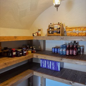 This earth-sheltered cellar adds a touch of quiet elegance to any home. Behind its wooden door lies a naturally cool space that keeps food and wine at their best — a blend of northern design and enduring comfort.
