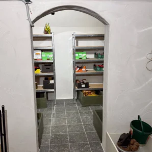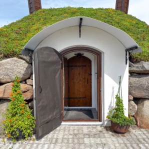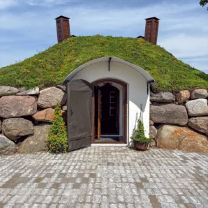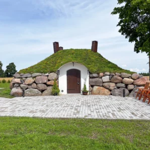 In Orissaare, where nature defines every rhythm, this concrete earth cellar offers a perfect balance of strength and stillness. Its solid concrete structure and green roof work together to maintain a naturally cool, constant climate through every season – pure function shaped by nature.